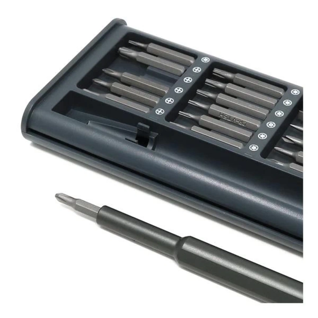 Özellikler: * Ürün adı: 25 1 tornavida seti * Sap malzemesi: alüminyum * Bit malzemesi: çelik * Kasa malzemesi: plastik.