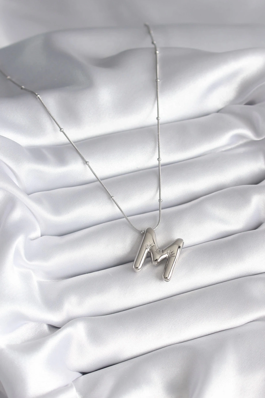 316L Çelik Gümüş Renk Bubble "M" Harf Model Kadın Kolye