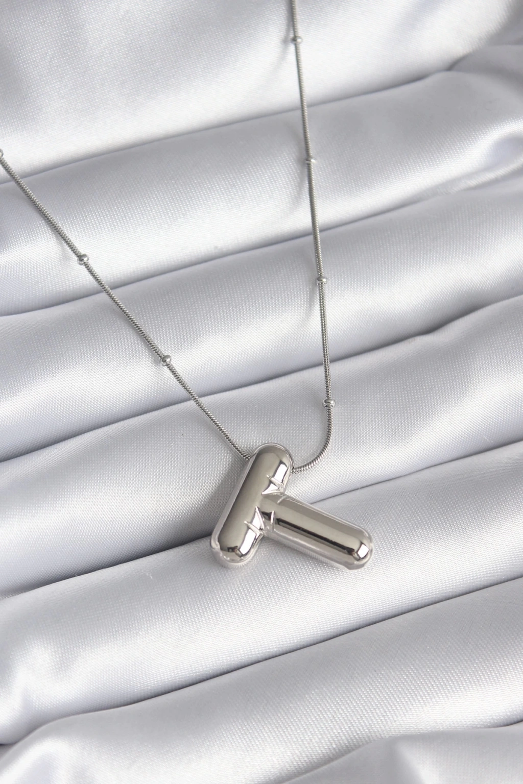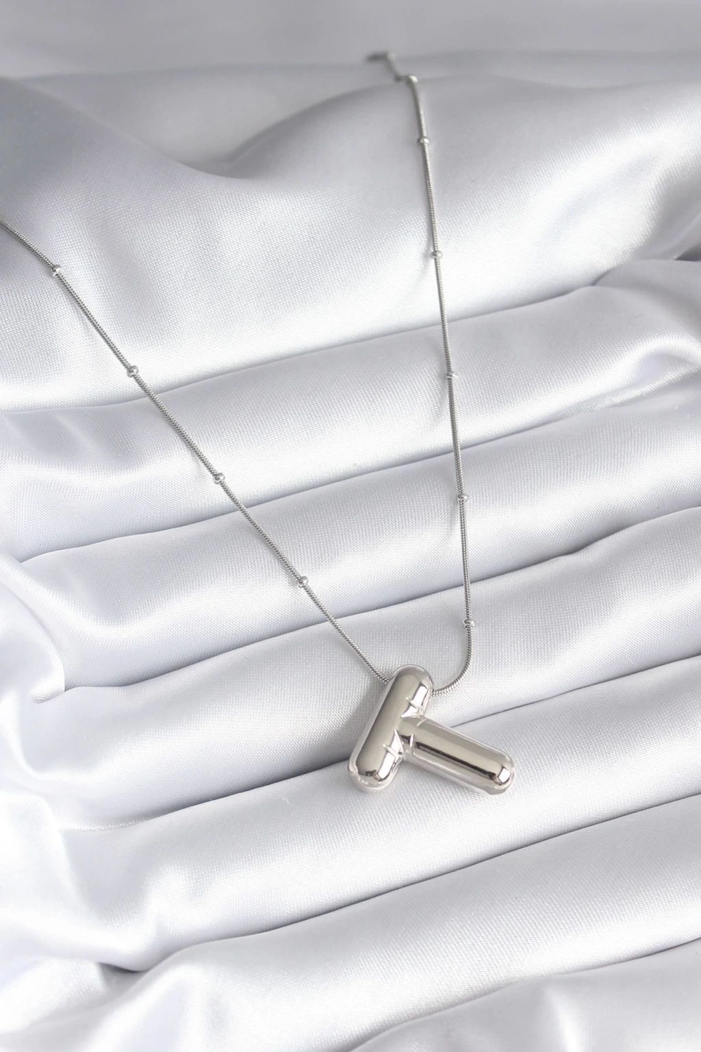 316L Çelik Gümüş Renk Bubble "T" Harf Model Kadın Kolye