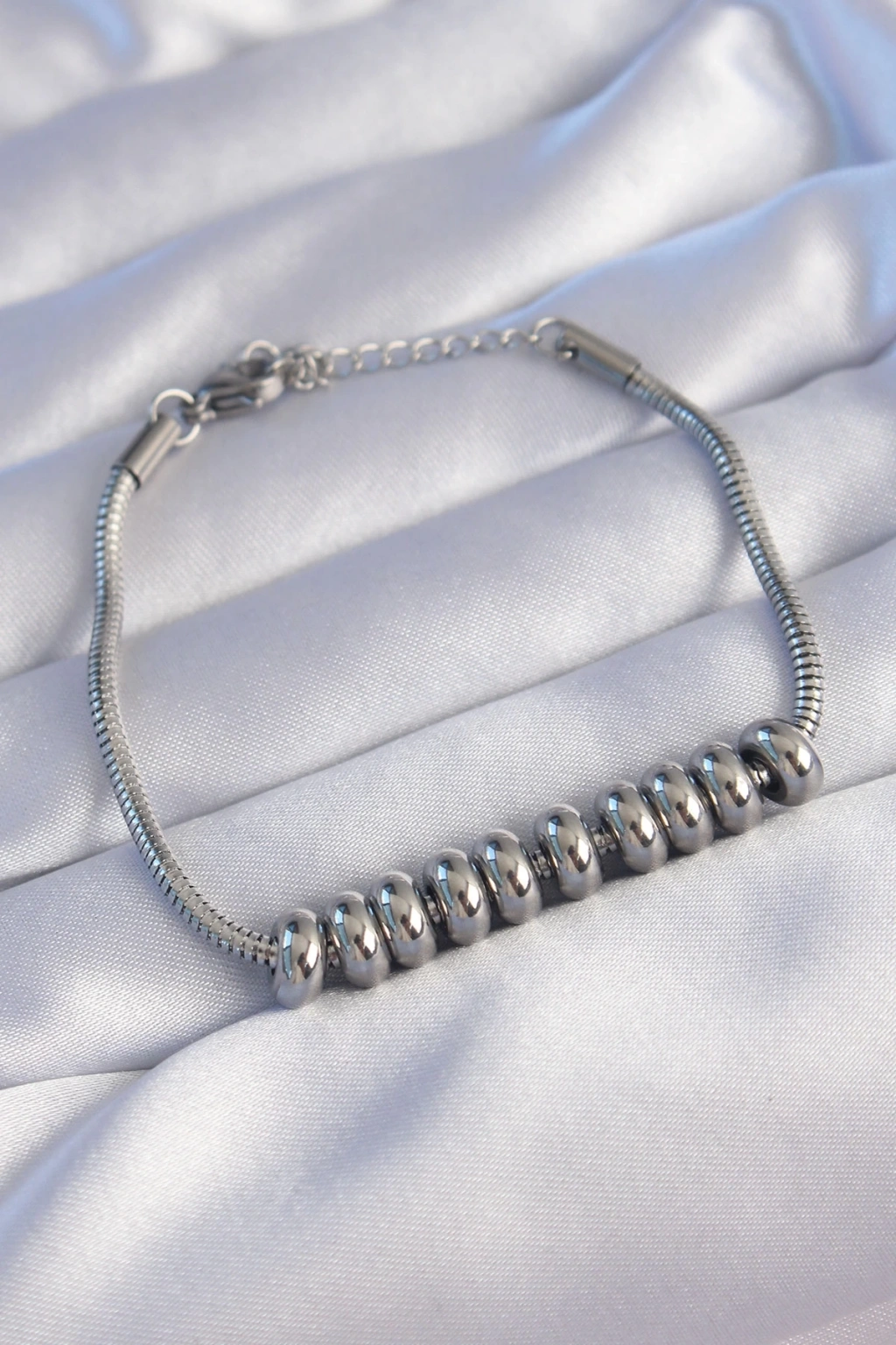 316L Çelik Gümüş Renk Oval Figürlü Bileklik