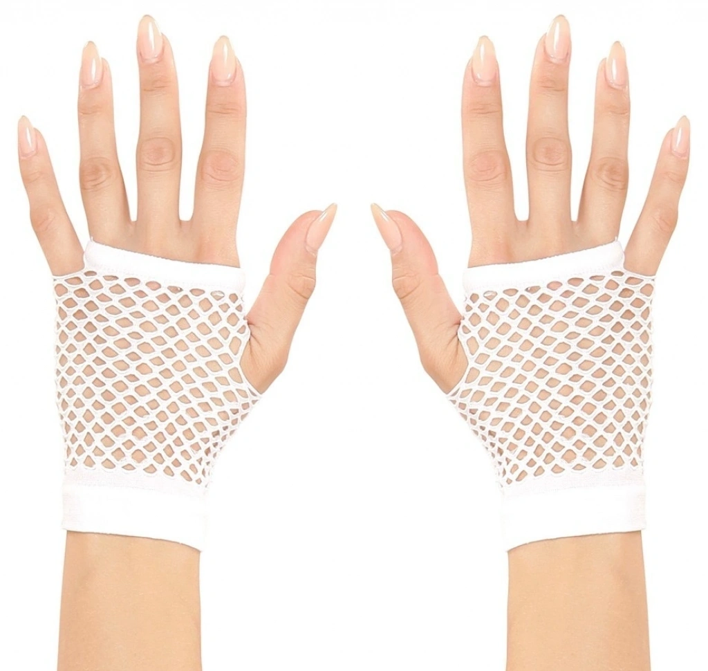 Karnaval ve cadılar bayramı kostümünüze bir dokunuş katacak kısa beyaz örgü eldivenler | Görünümünüzü bu 11 cm beyaz örgü eldivenlerle tamamlayın