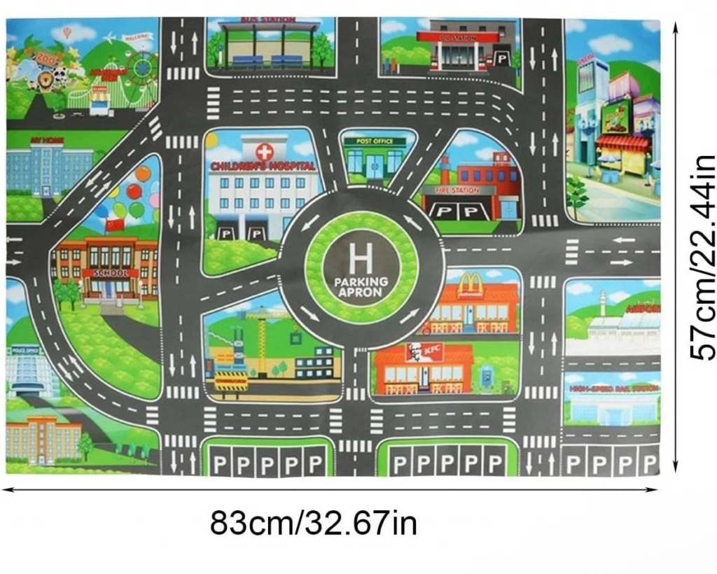 Yolda Oyun Süresi: Araba Halımızda renkli bir şehir manzarasını keşfedin ve canlı yollar ve binalarla yol maceralarını daha ilginç hale getirin. Çocuğunuzun hayal gücünü harekete geçirin ve daha fazla eğlenceyi teşvik eden canlı bir oyun alanı yaratın.