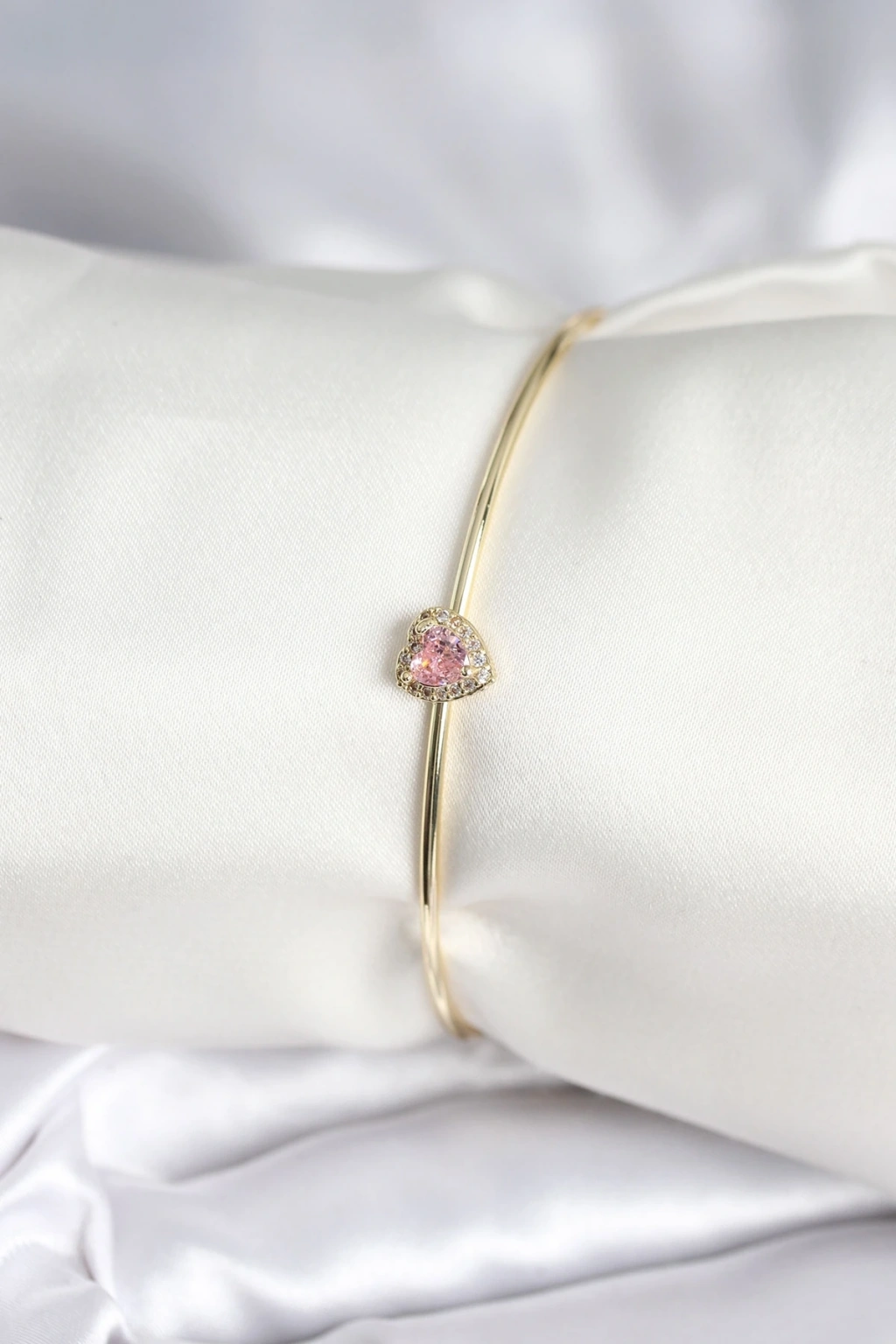 Pembe Zirkon Taşlı Kalp Model Gold Renk Kadın Bileklik