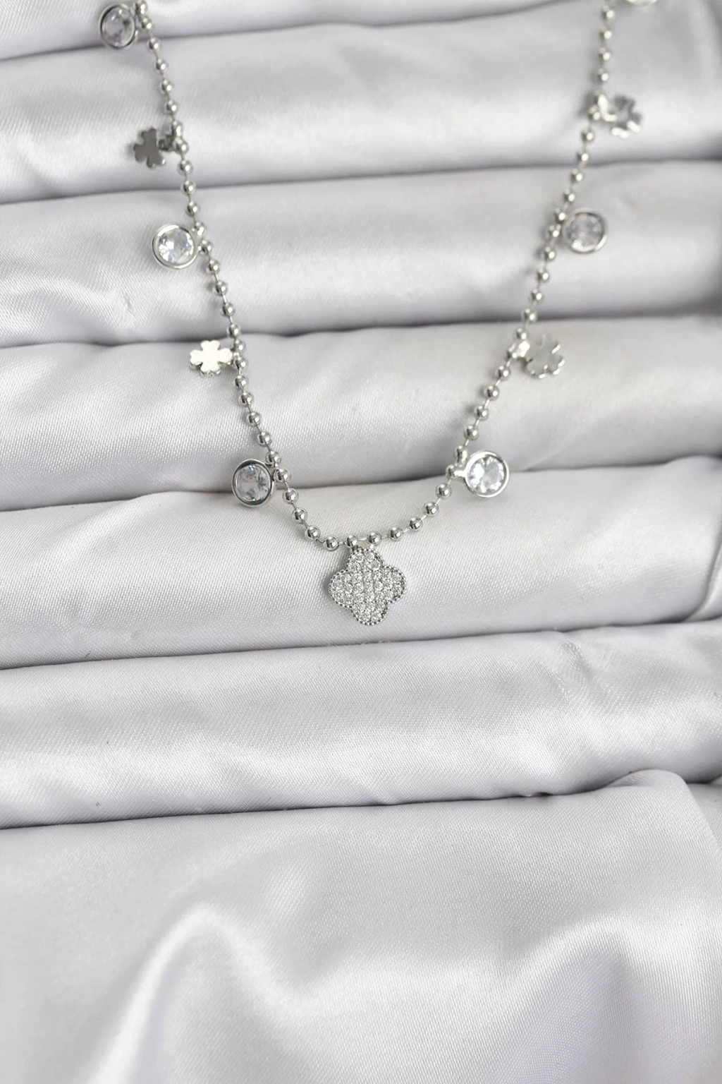 Pirinç Gümüş Renk Yonca Model Kadın Kolye