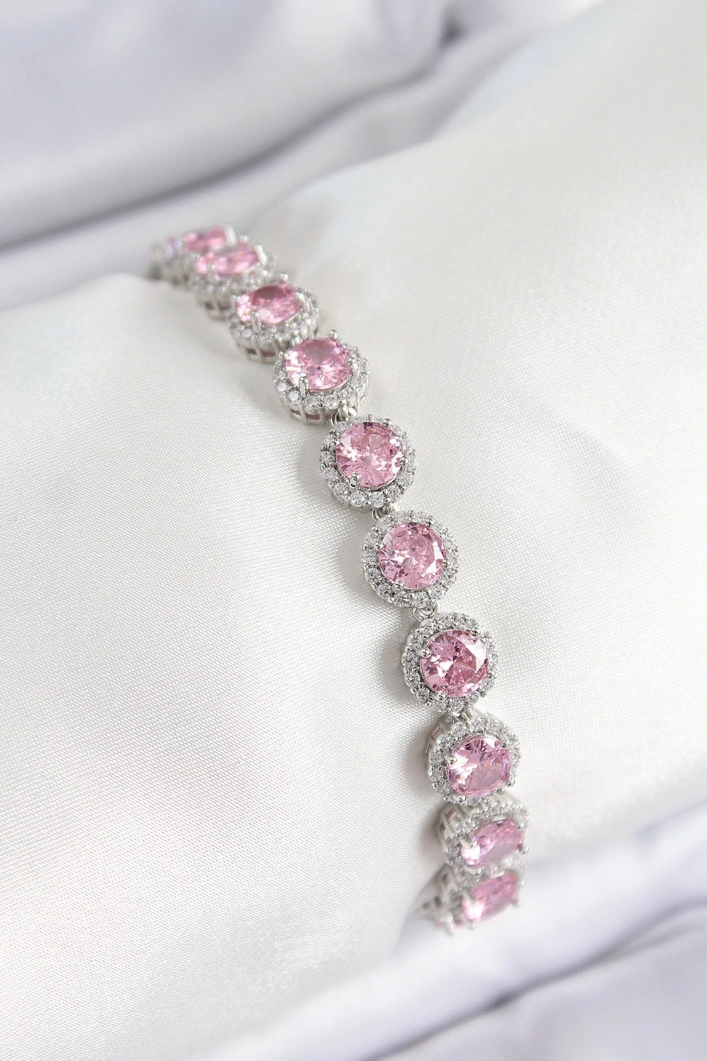 Pirinç Pembe Zirkon Taşlı Daire Baget Model Gümüş Renk VIP Seri Kadın Bileklik