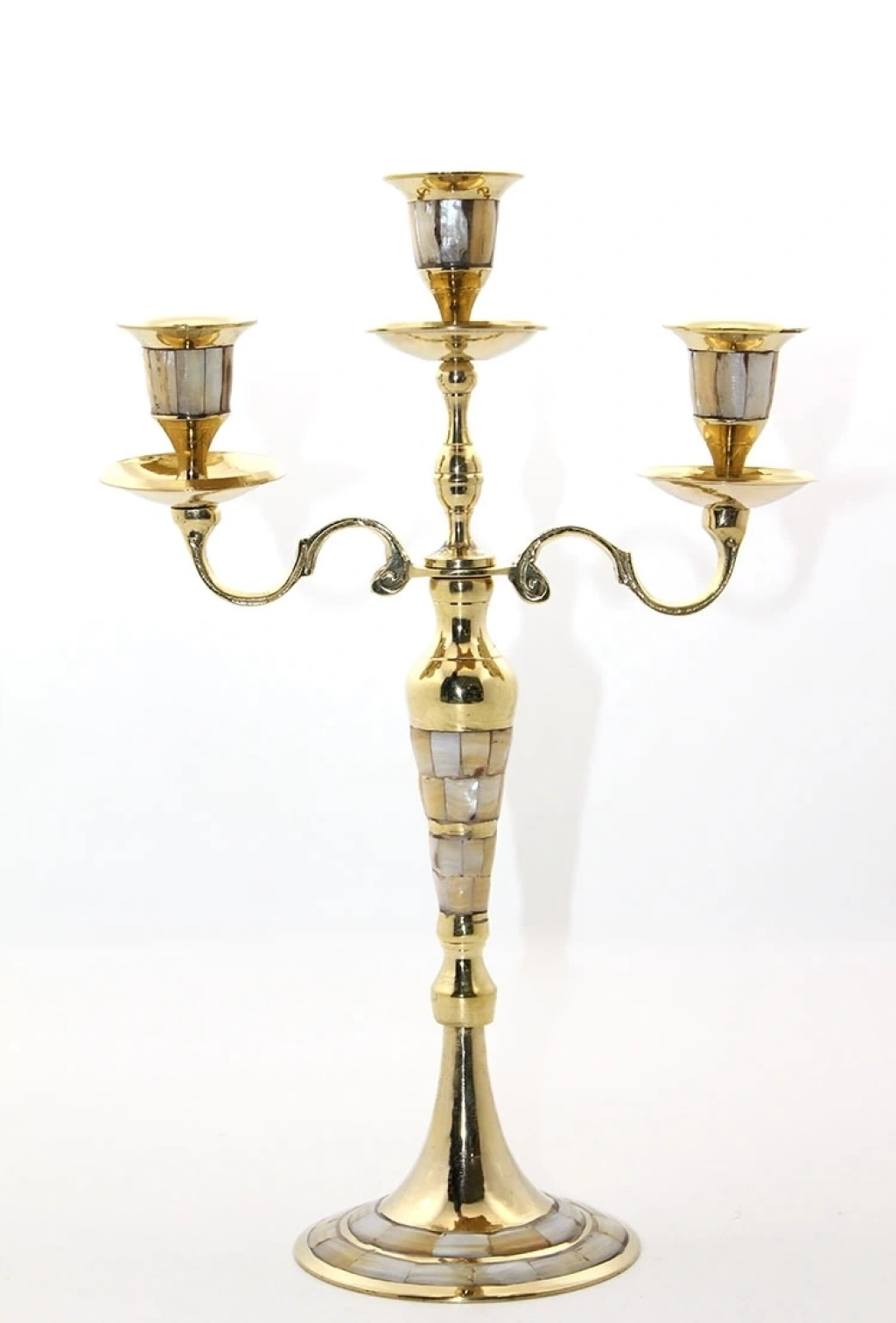 Pirinç Ve Sedef Karışımdan Üretilmiştir. Pirinç Sedefli 3'Lü Şamdan 35*23 Cm