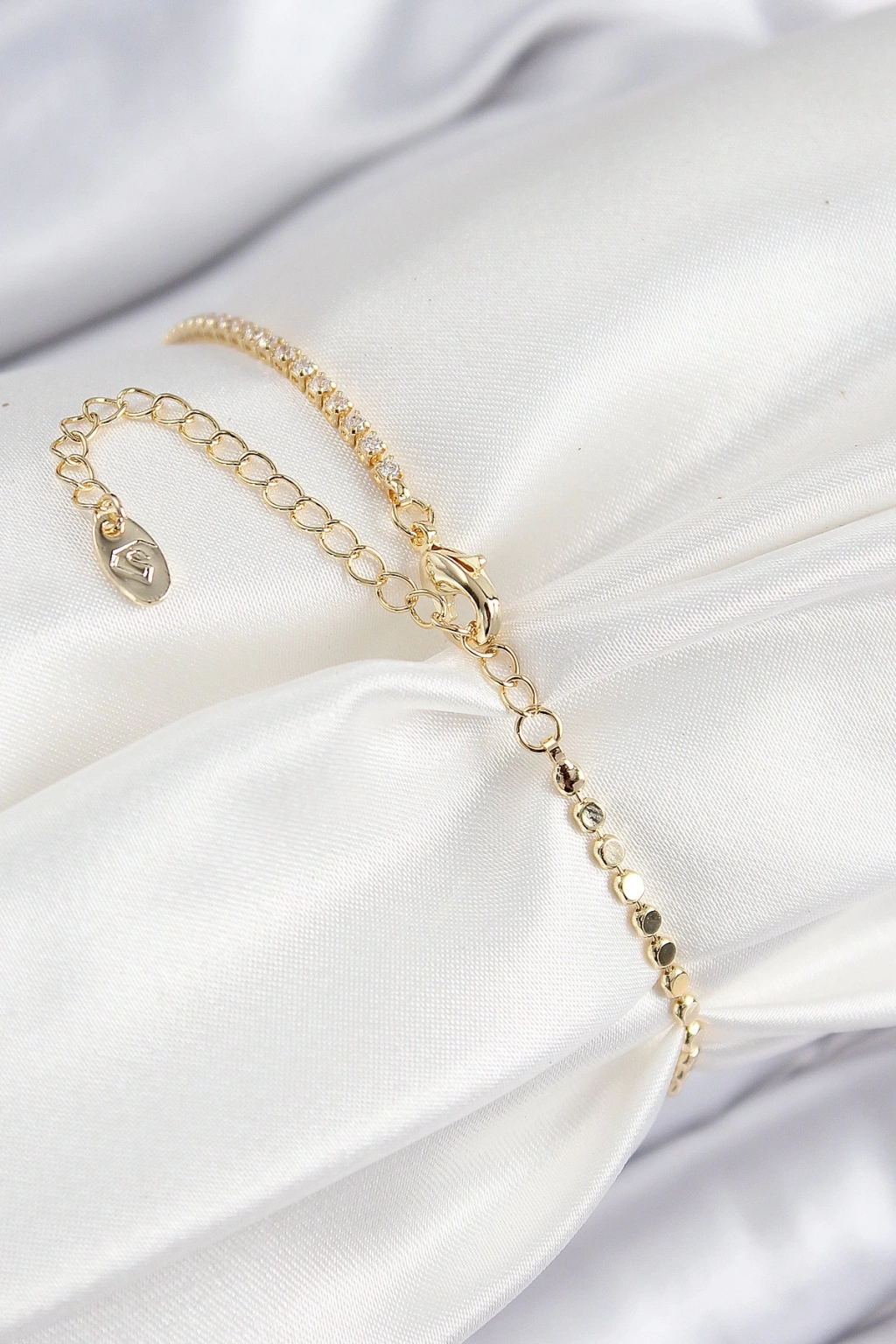 Pirinç Zirkon Taşlı Damla Model Ezme Zincir Gold Renk Kadın Bileklik