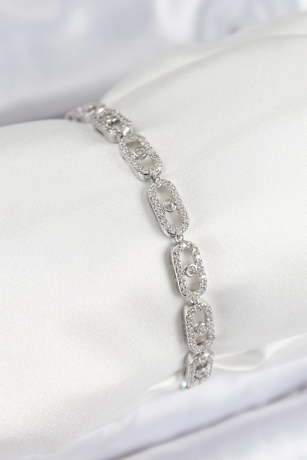 Pirinç Zirkon Taşlı Messika Model Gümüş Renk VIP Seri Kadın Bileklik