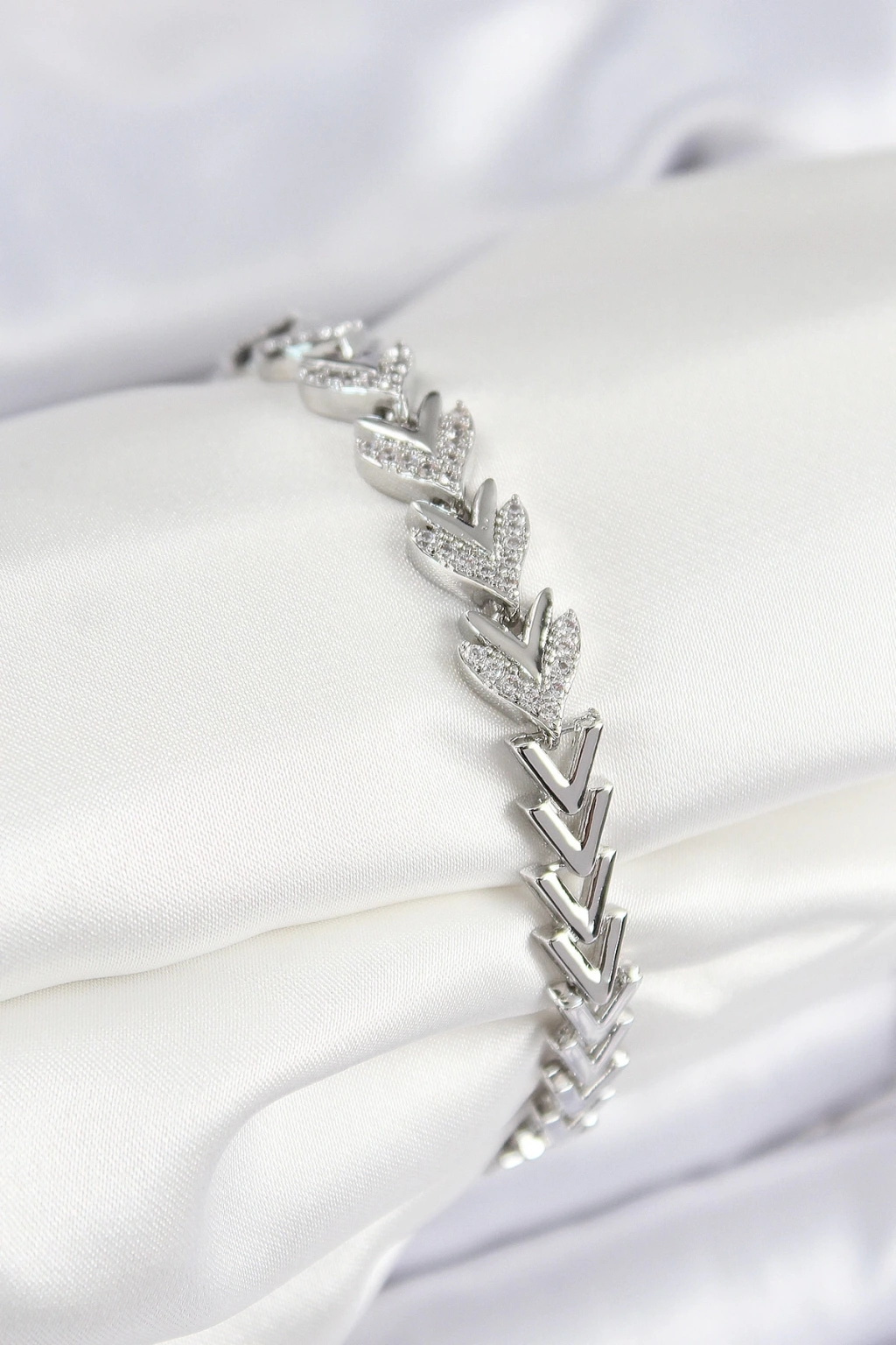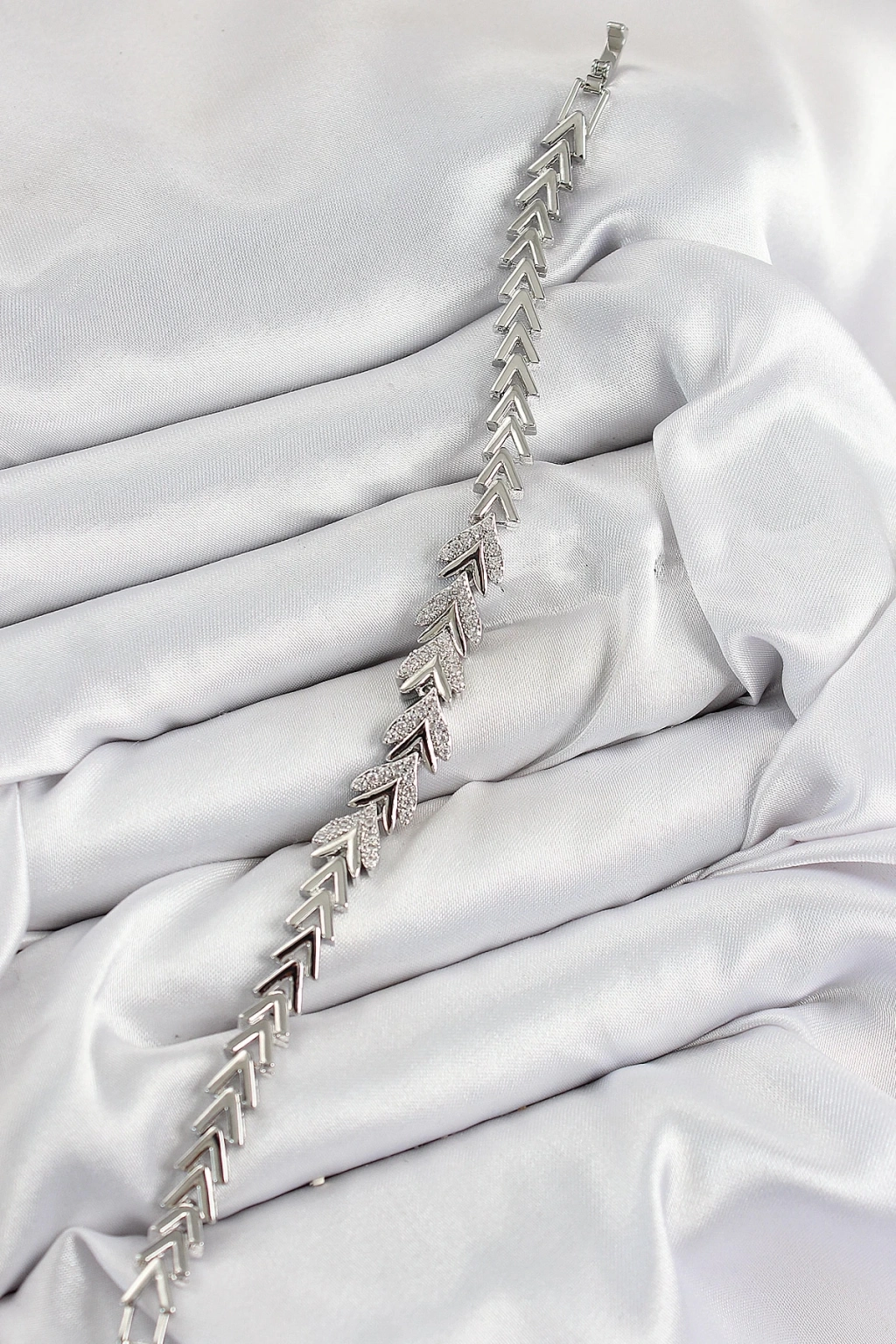 Pirinç Zirkon Taşlı Sıralı Ok Model Gümüş Renk Kadın Bileklik