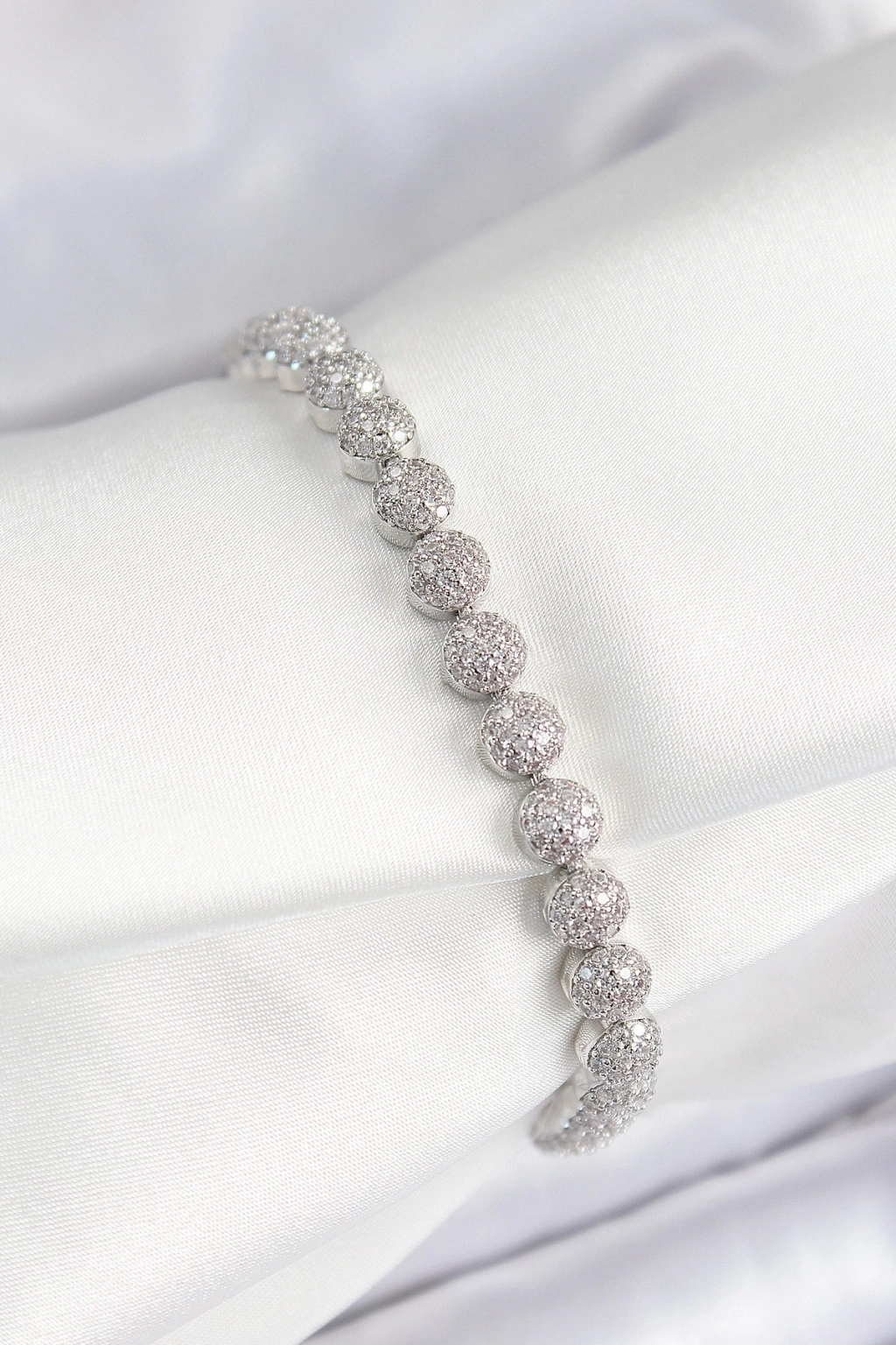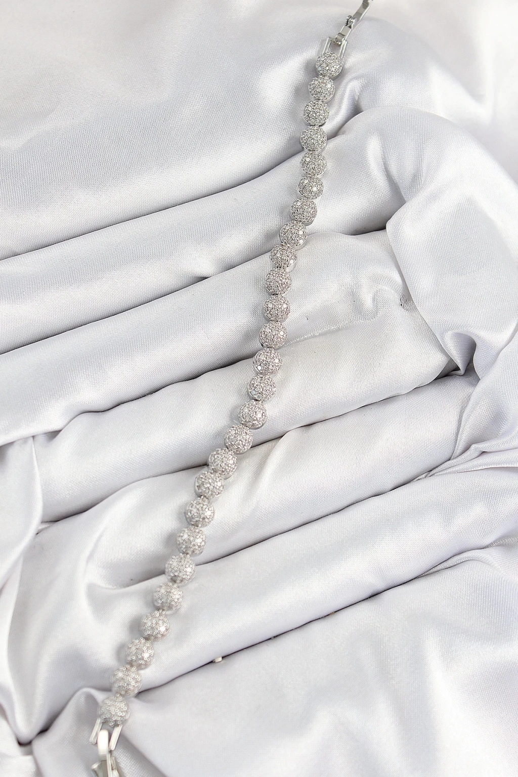 Pirinç Zirkon Taşlı Yarım Topcuk Model Gümüş Renk VIP Seri Kadın Bileklik