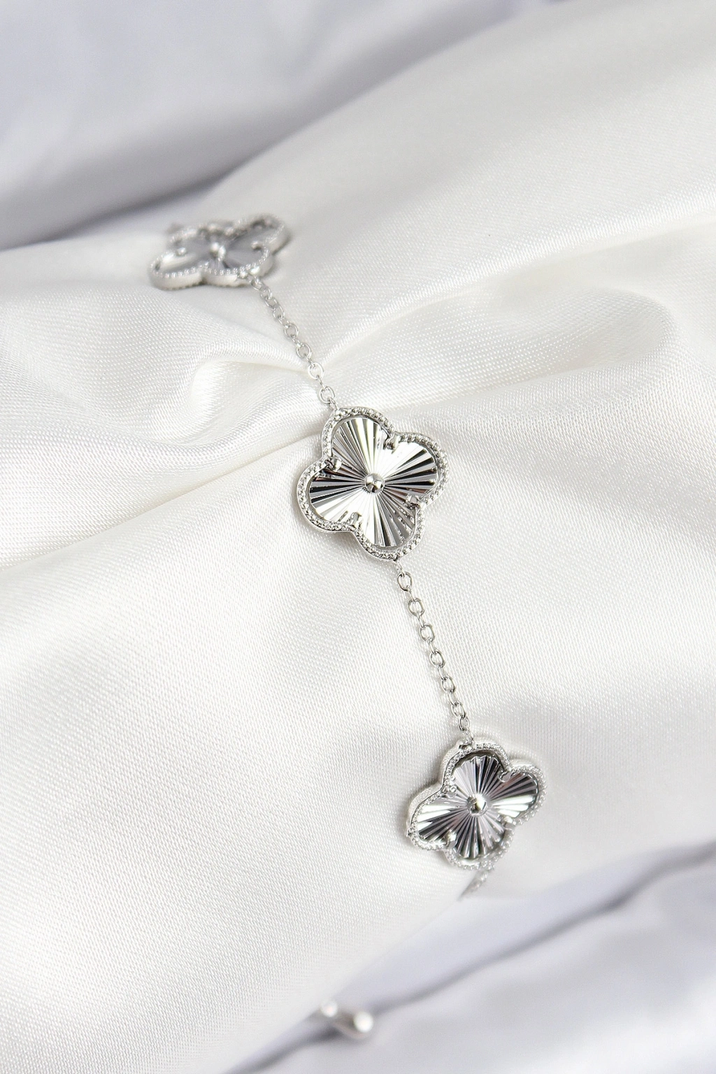 VIP Pirinç Yonca Model Gümüş Renk Kadın Bileklik